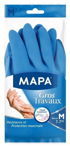 Le gant MAPA Gros Travaux offre une excellente protection mécanique et thermique pour tous les travaux domestiques et un grand confort d'utilisation grâce à sa triple épaisseur. En latex naturel à faible teneur en protéines. Coloris : bleu. Taille : M.
